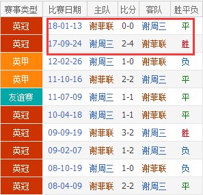 双方上个赛季交手两次,谢菲联总比分4:2占据上风。