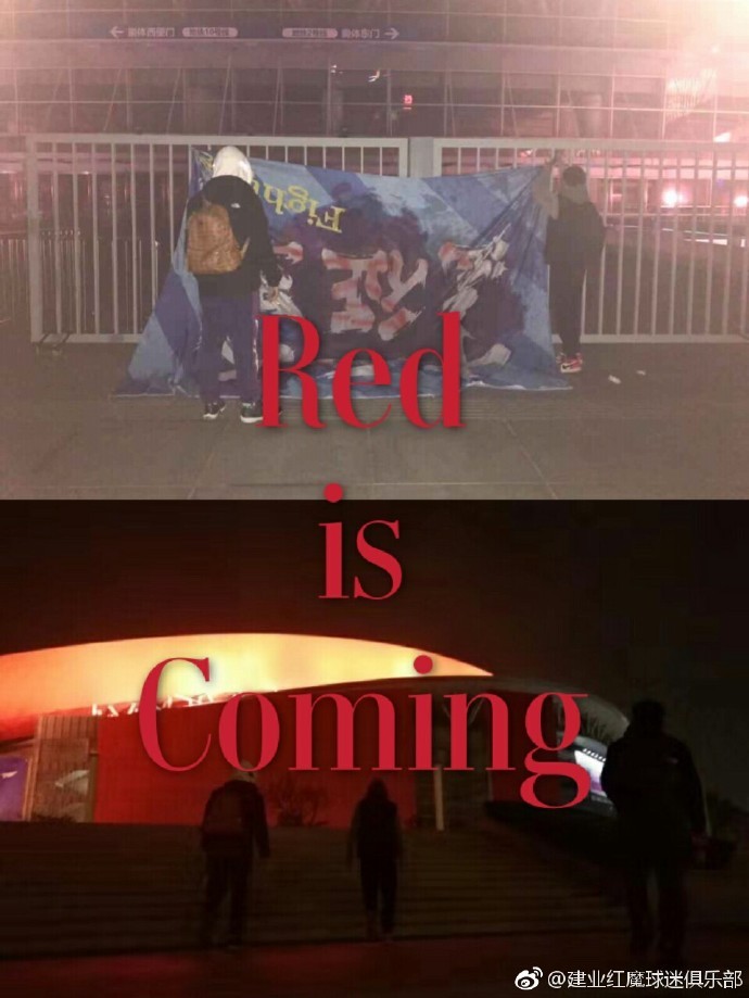 火药味十足,建业极端球迷把苏宁远征军旗帜涂成红色并倒挂抽筋的Zirlo @懂球帝2018-11-11 14:06本赛季中超最后一轮联赛将在今天下午打响,赛前南京奥体外就隐隐泛起火药味,部分极端球迷把苏宁远征军旗帜涂成红色,并倒挂在球场外。根据国内球迷组织的传统,如果该球迷组织的旗帜被收缴或倒挂,就相当于宣布组织的解散。据推测,这些球迷可能是在南京远征军前往建业客场时将他们的旗帜收缴,这次又带到了南京。比赛开始前一个多小时,建业红魔球迷俱乐部的成员就完成集结并在场外游行。展开更多