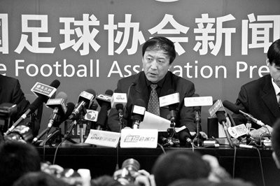 (图)2010年,中国足协纪律委员会主任王小平宣布对涉假球队处罚决定