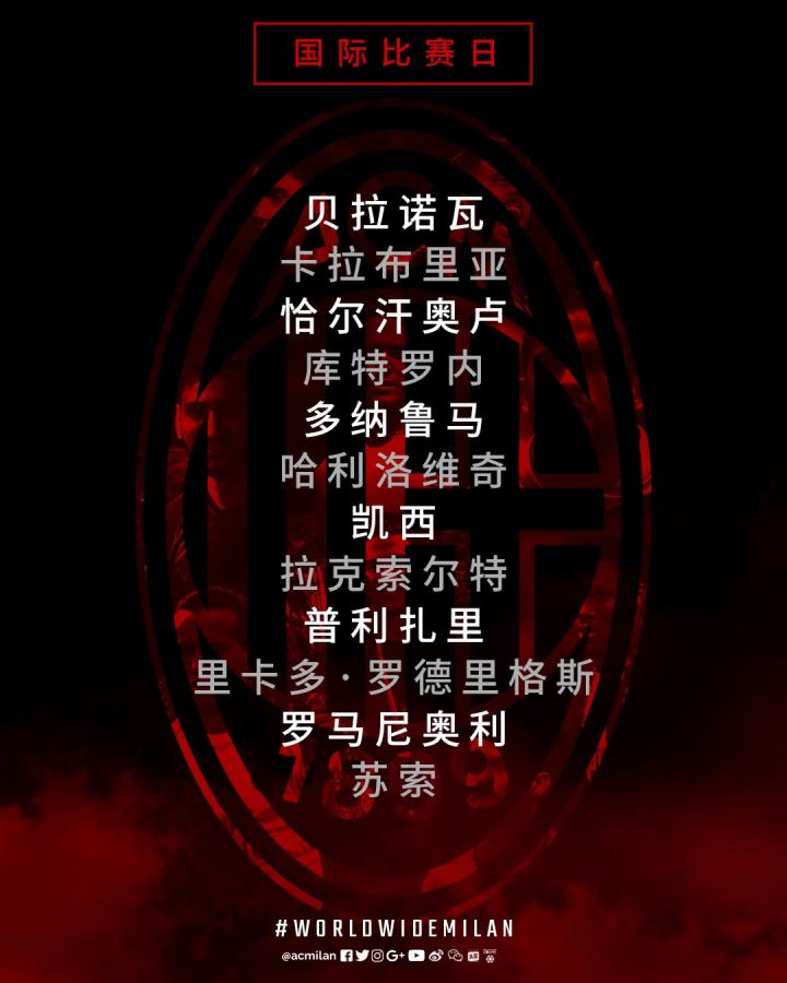 AC米兰足球俱乐部国际比赛日来临,共有12位红黑将士收到国家队征召,即将为国出征。