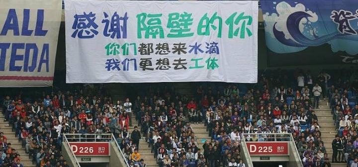 结束的,是“京津德比”的恩怨情仇。在事故发生后,北京球迷齐聚工体为天津祈福,而一位北京网友的一句“咱们还没骂够呢”彻底地解开了两队球迷间的心结。在泰达北看台高高挂起的“感谢隔壁的你”,以及“你们都想来水滴,我们更想去工体”的横幅,则是天津球迷最温情的回应。