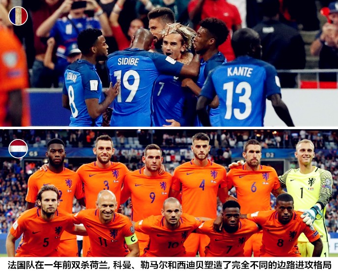 在亟需加强攻坚能力的情况下,德尚没有选择此前呼声很高的阿莱-普利亚,而是出人意料地用奥斯曼-登贝莱将吉鲁换下。这一方面是因为刚刚入选国家队的门兴射手很难适应这种大场面,另一方面就是因为荷兰队的进攻威胁始终存在,德尚不希望因为后场兵力不足而导致防线溃坝,无锋阵能够在压上时提供较好的反抢和压迫,在加强进攻的同时维持防守强度。