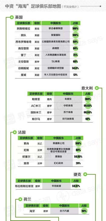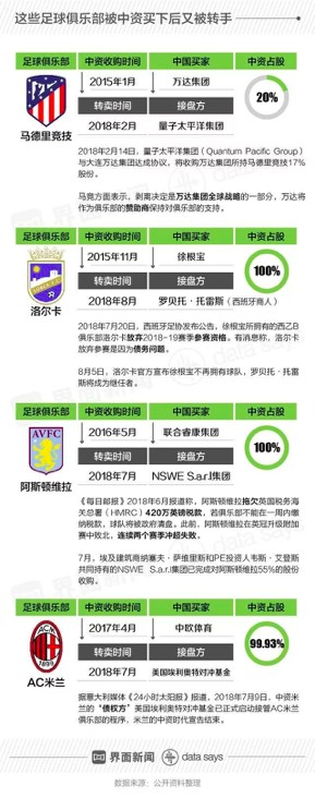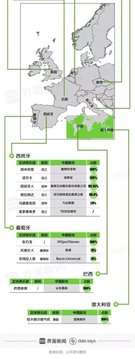在分享之前,我们先来看看此前界面新闻此前整理的海外中资足球俱乐部情况: