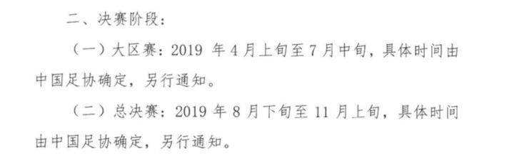 2019中冠联赛赛期将从4月开始,11月结束,其中大区赛将在4月上旬-7月中旬进行,总决赛在8月下旬至11月上旬进行,赛期拉长至8个月。报名期的安排上,会员协会需要在1月1日前进行参赛俱乐部报名;报名参加中冠联赛的俱乐部需要在2月1日前在中国足协信息化平台完成俱乐部注册;3月7日前,运动员和官员在中国足协信息化平台完成报名;2月1日前,中国足协将确定参赛俱乐部,并在2月22日前通过抽签确定大区赛小组队和赛程。