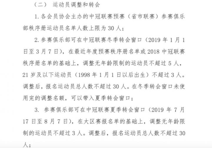 2019中冠联赛的转会窗将增加至两个:冬季转会窗口(1月1日-3月7日)和夏季转会窗(7月17日-8月7日)。冬窗调整球员名单为5+3人,可在最近年度预赛秩序册名单或2018中冠秩序册名单基础上,调整无年龄限制运动员不超过5人,U21球员不超过3人,冬窗未用完名额可带入夏窗;夏季转会窗在大区赛报名单基础上可调整无年龄限制球员不超过3人。