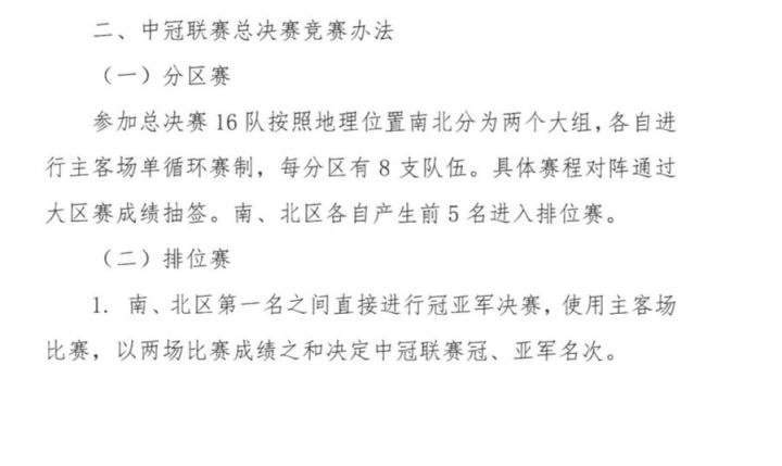 总决赛16队南北分区,主客场单循环赛制,各自产生前5进入排位赛;