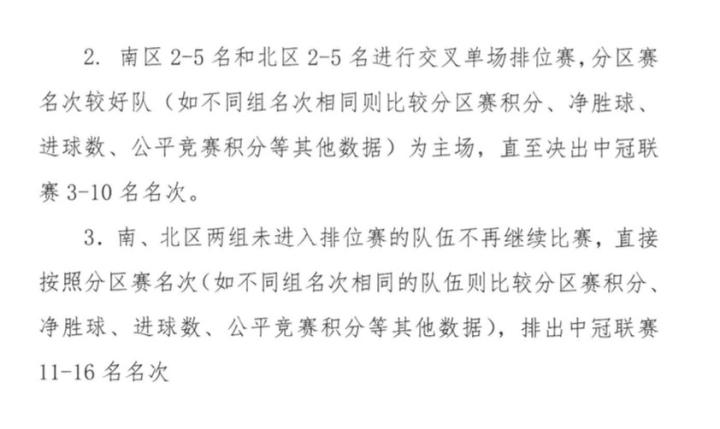 南北区未进入排位赛的队伍直接排出中冠联赛的11-16名。