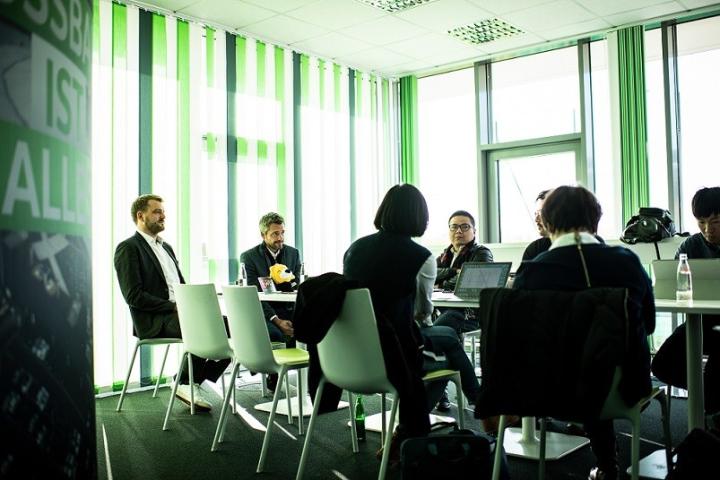 在沃尔夫斯堡俱乐部采访俱乐部高层(图片来源:沃尔夫斯堡俱乐部)