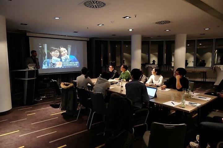除了一位记者曾到过德国,记者团中的其他记者都是第一次来到德国和德甲俱乐部。之后的丰富行程安排证明我们是非常幸运的,在为期四天的参观中,我们到访4座德国城市,聆听4次正式演讲,参观3个足球俱乐部、3个足球场和3个青训学院,现场观看2场德甲常规赛,采访了10位德甲人士,直接参与接待工作的德甲联赛和德甲俱乐部人员在20位以上。