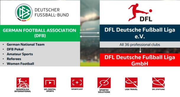 德甲联赛的管理者DFL Deutsche Fussball Liga GmbH(德国足球职业联赛)拥有一套完整的公司体系,来全面管理德甲和德乙两个联赛,从比赛组织、国际推广、信号制作、数字化、数据、科技到商务等所有方面的事务。