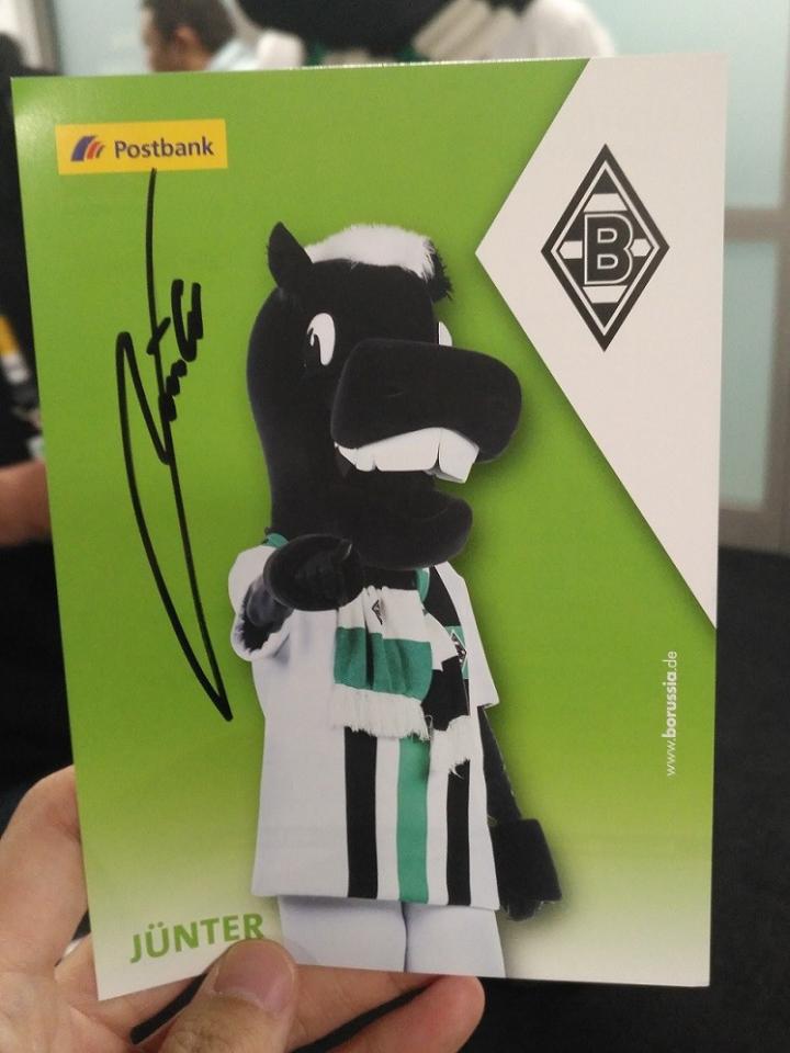来自门兴格拉德巴赫俱乐部的吉祥物——小马驹Jünter的亲笔签名照(图片来源:禹唐体育)