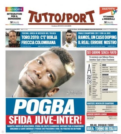 北京时间11月24日,据意大利《都灵体育报》头版消息,即将前往国际米兰任职的马洛塔可能会和老东家尤文图斯争夺曼联中场博格巴,因此他可能把什克里尼亚尔或者佩里西奇提供给曼联。