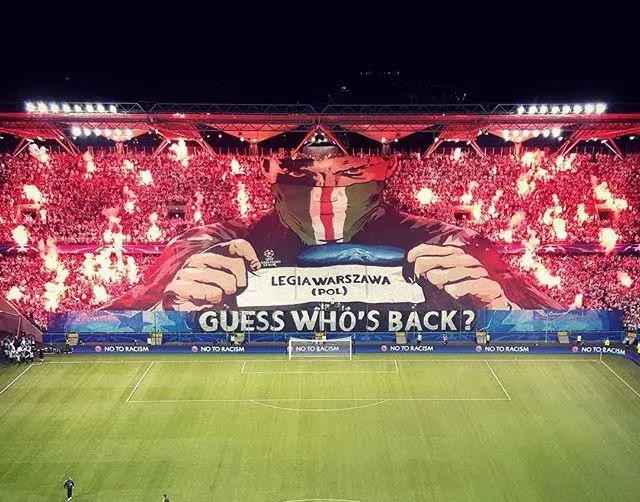 而说起TIFO,圈哥便想起了两年前欧冠比赛上,华沙莱吉亚主场球迷看台上的TIFO,那可真是震撼啊!