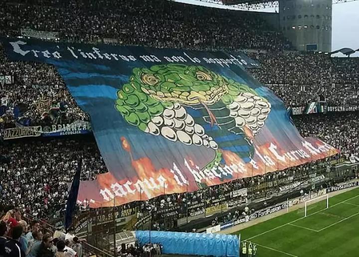 经典的宠物蛇图案也被球迷称作国际米兰球迷做过的最漂亮的TIFO,而且还颇有寓意。