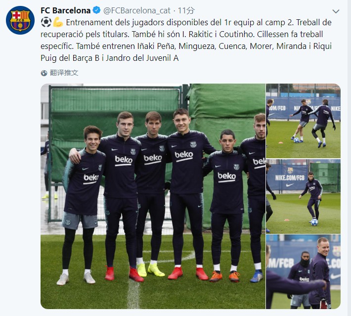 恢复,库蒂尼奥重回训练场Elix_wang @懂球帝2018-11-26 19:33巴萨官方推特今天更新了球队的训练情况,库蒂尼奥出现在了训练场上。此前他因左大腿肌肉轻微撕裂缺席了2周时间。首发球员进行了恢复性训练。库蒂尼奥、拉基蒂奇进行了训练,而西莱森进行了专项训练。此外佩尼亚、明格萨、莫雷尔、米兰达和普伊奇等B队球员也和一线队进行了训练。展开更多