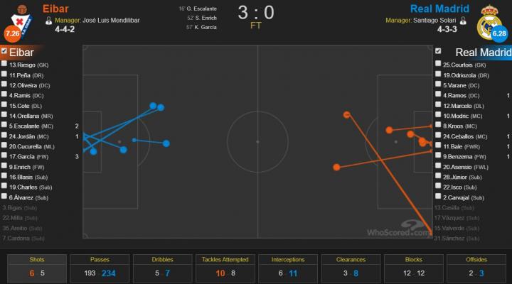 国家队比赛日之后,我们再度看见了莫德里奇、克罗斯以及塞瓦略斯组成的三中场。但和洛佩特吉时代的“前腰”不同,看起来塞瓦略斯在索拉里手下的定位基本就是个“后腰”。这样的配置在此前有过一次成功的试验,却在本场比赛里却遭受了毁灭性的打击。因为,埃瓦尔真的太疯狂了……