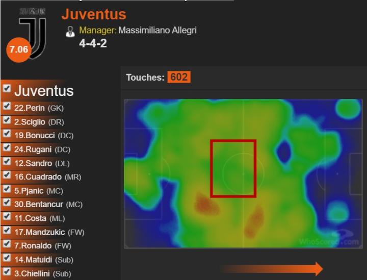 (图)从热图来看,尤文本场比赛出现了中路的“局部真空”