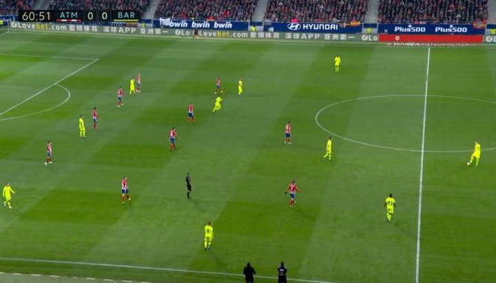 巴萨控球,但穿不透马竞的层层防守。马竞反击,也因为兵力有限没什么实质性的威胁。双方都小心地呆在自己的安全区内,坚决不去轻易冒险。