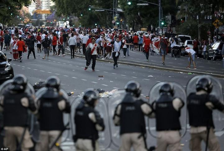 杂物乱飞,球迷试图强行通过安保冲入场内,警察发射催泪瓦斯和橡皮子弹试图驱散人群。在比赛确定推迟后,在场内等候许久的球迷开始离场,有部分遭到抢劫,闹事者试图抢夺门票以便能进入重新安排的比赛。