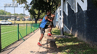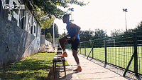 休息过后,我们开始进行爆发力和稳定性的训练,首先我们练习慢速向上迈步,我们踩在台阶或椅子上,只是简单地上下活动,控制好节奏,不要太快。大力射门不仅仅需要强壮的肌肉,还要保持身体稳定和灵活,能快速进行调整。这个动作我们两腿各做10个为一组。