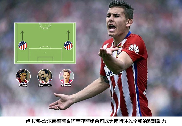 马竞现阶段迫切需要升级的位置就是边后卫,菲利佩&胡安弗兰组合应付西甲中下游球队尚可,面对欧冠级别球队时已经不具备攻守兼顾的能力。同样是使用442体系,西蒙尼可以借鉴德尚对卢卡斯-埃尔南德斯的使用方式,法国多面手是左后卫的理想人选;另一侧的闸位属于阿里亚斯,哥伦比亚人的进攻能力和配合意识不错,他需要提升的是防守意识和位置感,需要主帅在战术方面予以倾斜来规避自身在体格方面的劣势。