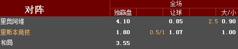 本场比赛机构给出里斯本竞技客场让半球低水盘,虽然里斯本竞技的形象在里奥阿维之上,但是里斯本竞技仅比里奥阿维多4分,特别是里奥阿维主场保持不败,这样的情况下半球“生死盘”下下盘不乏追逐者,利于上盘降温。