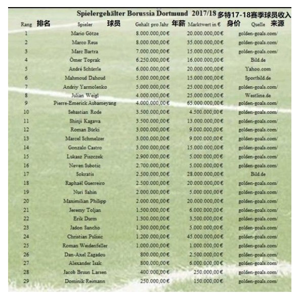 我们从上表中可以看出,这个薪金,在17-18赛季多特蒙德队中是属于轮换主力的水平比苏伯蒂奇稍低,与索克拉蒂斯·帕帕斯塔索普洛斯、古埃雷罗持平,超过沙欣,几乎是杜尔姆和桑乔的两倍