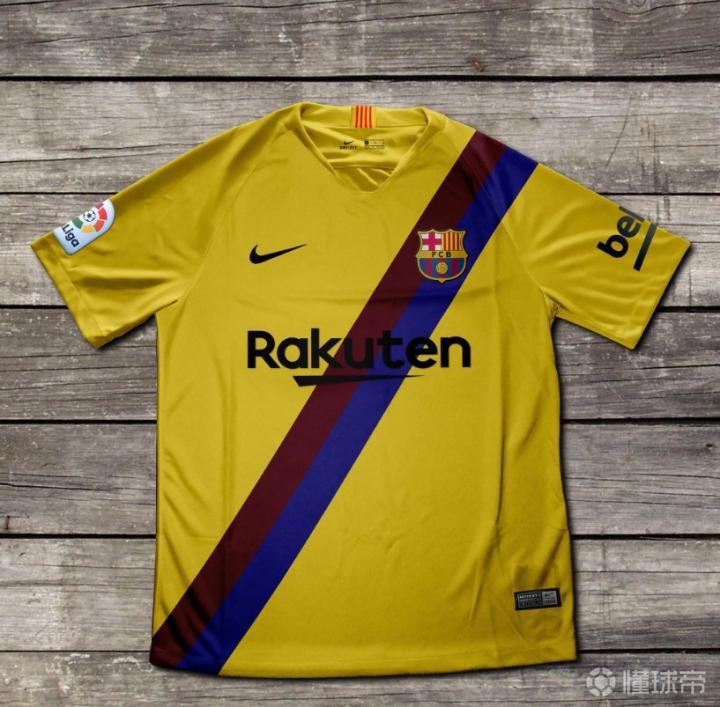 网络中流传的客场球衣则采用复古设计,使用黄色为主色调,并配以红蓝两色饰带从胸前左上角斜穿至右下角。这一设计的灵感来源于上世纪70年代巴萨的标志性球衣,但饰带的位置正好相反。