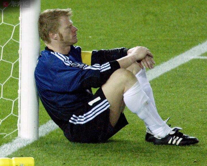 可反过来说,卡恩也是“生得逢时”的,在德国队结束黄金时代,在最需要领袖的时代是卡恩站了出来,2002年世界杯,他戴上了德国队的队长袖标,成为了守卫德意志的最后一条防线。他把守的球门让对手胆怯,让队友安心,淘汰赛连续3个艰难的1-0让德国队闯入2002年世界杯决赛,可巴拉克却在决赛中遭遇停赛,锋线的克洛泽在桑巴人的舞蹈中沦为看客,卡恩几乎成为了德国队唯一的依靠,之前6场比赛只丢1球的德国防线摇摇欲坠,在卡恩手指受伤之后,那辆沉重、古老的老爷车终究被四轮驱动的桑巴军团甩开,可能很多人都还对决赛中卡恩的那次脱手记忆犹新,还记得卡恩背靠着门柱的懊悔,记得他呆呆看着卡福高举大力神杯的背影……而那一届世界杯,也几乎是卡恩在世界杯舞台上所有的表现,2006年,他的位置被莱曼顶替,只在无关紧要的三、四名比赛中出场了一次。