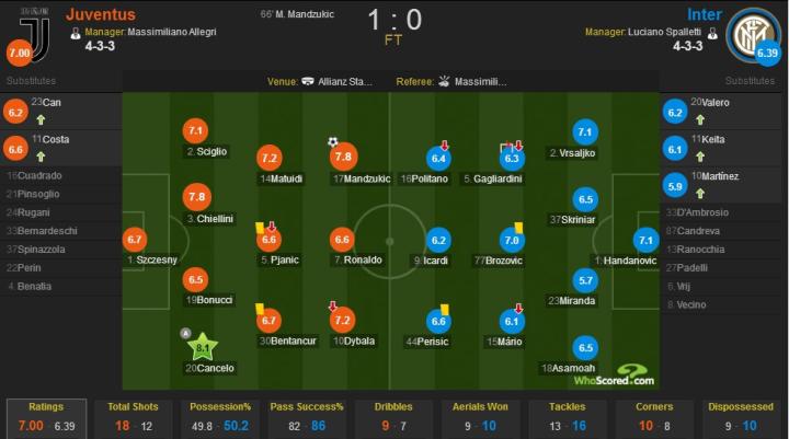 经过双方90分钟的见招拆招,尽管沉稳开局伺机而动的国米一度在上半场看到领先的希望,但技高一筹的尤文还是在主场一球小胜拿下本赛季第一回合国家德比的胜利。