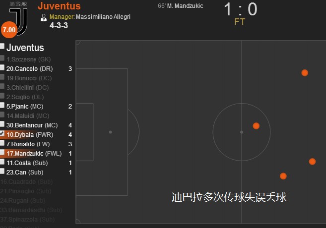斑马军团的中前场梳理,尽管可以通过中场向边锋或助攻边后卫交球,进而完成两翼传中完成。但真正实现拉扯对手防线,完成整个中场同前场攻击球员(双中锋及助攻边卫)的连接建立的,是球队的10号球员,迪巴拉。这也是阿莱格里在联赛开局阶段如此爱之深责之切地敲打并帮助阿根廷小魔仙尽快找回状态的原因。