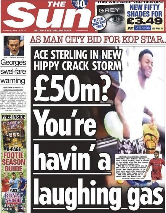 其中名气最大的无疑就是如今英格兰飞翼斯特林了,这位瓜帅爱将自成名以来就一直负面新闻缠身,作为各类娱乐场所的忠实爱好者,斯特林的一举一动自然成为了太阳报等众媒体关注的焦点,在之前效力利物浦时期,斯特林就曾被拍到多次吸食水烟,而就在2015年的夏天,也就是斯特林转会曼城的那个夏天,斯特林又被《太阳报》拍到吸食笑气,以至于当时《太阳报》当时头版的标题就是“5000万英镑?你又在吸食笑气了”来讥讽这位英伦新星。不过随着年岁的增长,斯特林在这方面也逐渐收敛,加盟曼城之后也很少再传出吸食笑气或者水烟的新闻,这或许也是英格兰人如今在蓝月亮表现出色并获得续约的原因之一。
