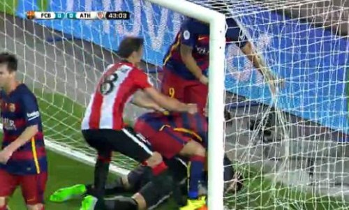 落后一方进球后,进攻球员总会冲进球门内将球抱回中圈以节省时间,这个环节也是防守一方“挑事儿”的良机。2015年,西班牙超级杯次回合在诺坎普球场展开争夺,交战双方是巴萨和毕尔巴鄂竞技。由于首回合巴萨告负,所以巴萨想取得尽量多的净胜球,为此他们需要争分夺秒。梅西打进一球后,巴萨队员想把球放回中圈尽快开球。可是,毕巴门将伊莱索斯却在球门里死死地抱住皮球不撒手,佩德罗上前抢球也没有任何效果。最终,裁判出面才使比赛继续进行,佩刀还因此吃到了一张黄牌。