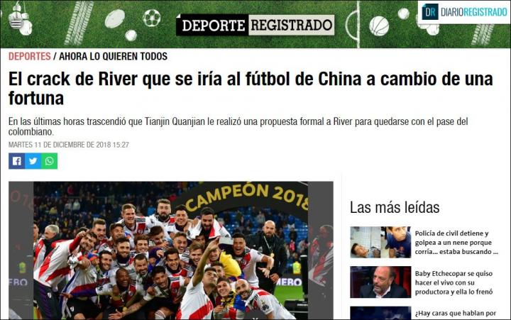 阿根廷媒体《河床新闻》爆料,来自中国的天津权健已经正式向金特罗提供了一份1000万欧元转会费的报价,但是距离金特罗经济团队提出的2900万欧元转会费相差甚远。