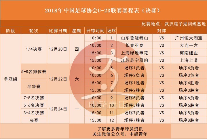 五、U23联赛8强对阵:12月20日打响,鲁能PK恒大。