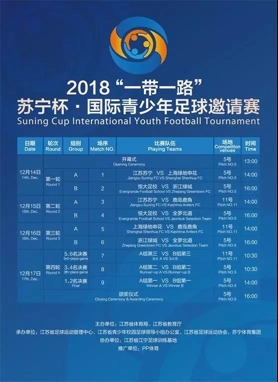 12月14日,为期4天的2018“一带一路”苏宁杯•国际青少年足球邀请赛将于南京江宁足球训练基地开幕。