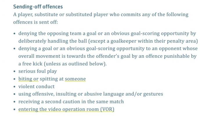 (图)IFAB最新规则中对红牌驱逐出场的八种情况说明