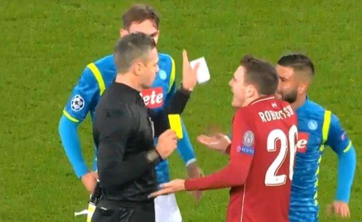 红蓝双德昨天在安菲尔德球场进行的利物浦与那不勒斯的欧冠出线生死战中,比起1-0的平淡比分,比赛第13分钟出现的一次犯规反而成为了赛后关注的焦点。红军后卫范戴克以一记滑铲破坏了对方反击的同时也铲倒了奔跑中的梅尔滕斯,而随即荷兰国脚也因此吃到了一张黄牌,但赛后无论是那不勒斯球迷还是主帅安切洛蒂都认为范戴克的这一次滑铲应当被红牌罚下,甚至一部分那不勒斯球迷怒骂这位荷兰中卫为“屠夫”(butcher)。那么严格来说,斯科米纳的这次争议判罚是否准确呢?红军铁卫的这次犯规是否该吃红牌呢?