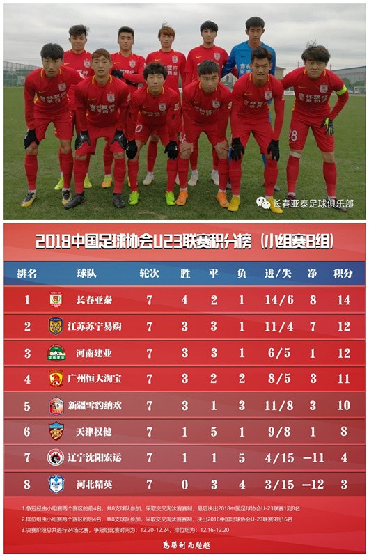 已入寒冬,寒风凛冽,迷雾重重,这也给首届U23联赛披上了神秘色彩。经过15天共56场比赛的激烈角逐,最终山东鲁能泰山、长春亚泰、上海绿地申花、上海上港、广州恒大淘宝、大连一方、江苏苏宁易购、河南建业共8支球队从小组中成功突围,获得进入U23联赛决赛争冠组的入场券。