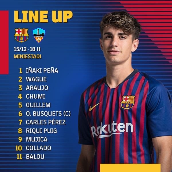 阵容:Iñaki Peña, Wague, Araujo, Chumi, Guillem, O. Busquets, Carles Pérez (Cuenca, min 90), Riqui Puig (Mingueza, min 90), Mujica, Collado y Ballou (McGuane, min 79)。