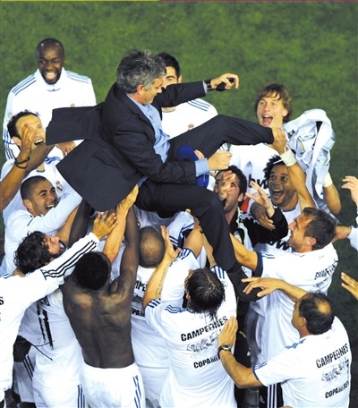 (图)穆里尼奥在皇马也曾受到球员这样的拥戴