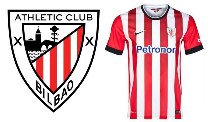 ↑毕尔巴鄂竞技队的队徽及球衣样式。