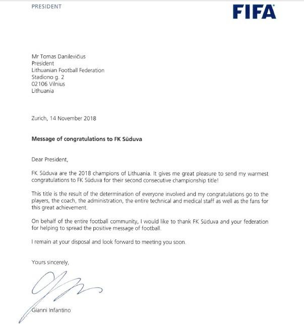 本赛季苏杜瓦与维尔纽斯绿森林的角色对调,虽然对手在积分榜上一路紧咬着,但是没有给对手反超的机会。苏杜瓦以五分的优势进入争冠组附加赛,并提前一轮夺冠,实现顶级联赛两连冠。国际足联主席因凡蒂诺在得知苏杜瓦夺冠后,致信恭喜他们夺得联赛冠军。