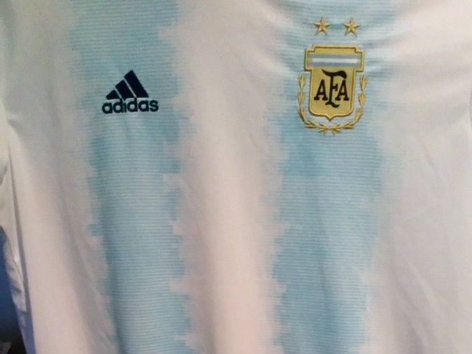 新球衣拥有一个黑色圆领,袖口也采用黑色设计。球衣肩部加入天蓝色阿迪达斯胜利三条纹,打造出经典的视觉效果。特别值得一提的是,球衣衣袖上加入一枚拥有浮雕质感的阿根廷国徽,这也是多年来阿根廷国徽首次出现在球衣上。