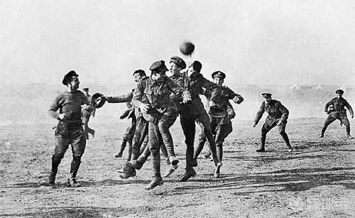 其乐融融之际,不知哪位士兵一时兴起,突然提议“踢一场足球赛”,此言一出,马上得到了热爱足球的年轻小伙子们的赞同,他们当中还有不少在战前做过职业球员,当然不能放过这个大展身手的机会。