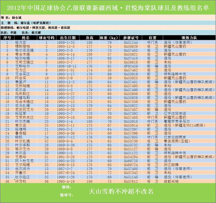 征战联赛的球员名单,37号球员海米提因无数据未加入名单