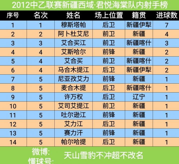 队内射手榜,穆斯塔帕(现名努尔买买提)7球位列榜首。