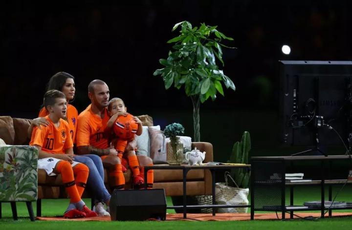 2010年是斯内德个人职业生涯最巅峰的一年,但他却成了金球奖和世界足球先生合并后的第一个牺牲品。多年之后,当莫德里奇凭借世界杯的精彩表现打破梅罗的金球垄断,斯内德这位金球奖的无冕之王已经在国家队退役。2018年9月6日,荷兰国家队为斯内德举办了告别赛,来纪念这位曾经让郁金香无限接近世界冠军的功勋球员。荷兰人把沙发、电视、茶几搬到了球场内,斯内德在家人和全场球迷的陪伴下,收获了所有人对他的祝福。爱你的人给不了你一座金球,但可以给你一座温暖的家。