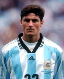 98年是萨内蒂的第一届世界杯,小组赛阿根廷队三战全胜以小组第一出线,但是却遇到了实力同样强劲的英格兰。阿根廷与英格兰的16强战打得荡气回肠,被誉为世界杯历史上的世界大战。上半场第45分钟,阿根廷队前场任意球,埋伏在人墙中的萨内蒂突然出现接球转身左脚抽射破门,为阿根廷队打入扳平比分的一球。虽然止步8强,但是萨内蒂在大战英格兰的比赛中留下了世界足坛的经典一幕。