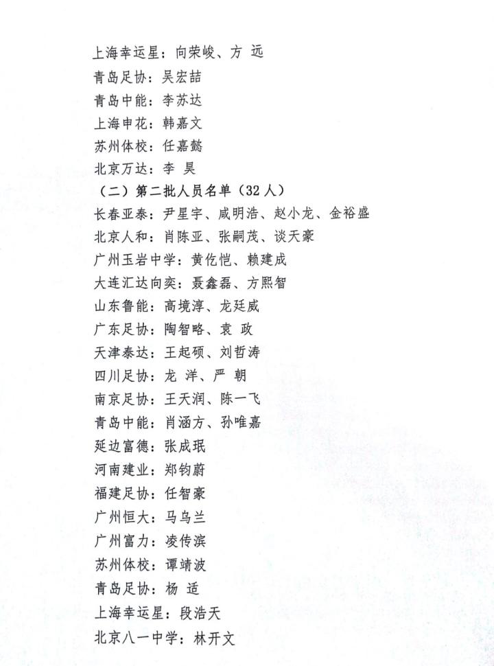 二、U18国家队集训名单:申花苏宁各5人,陶强龙黎腾龙入选。